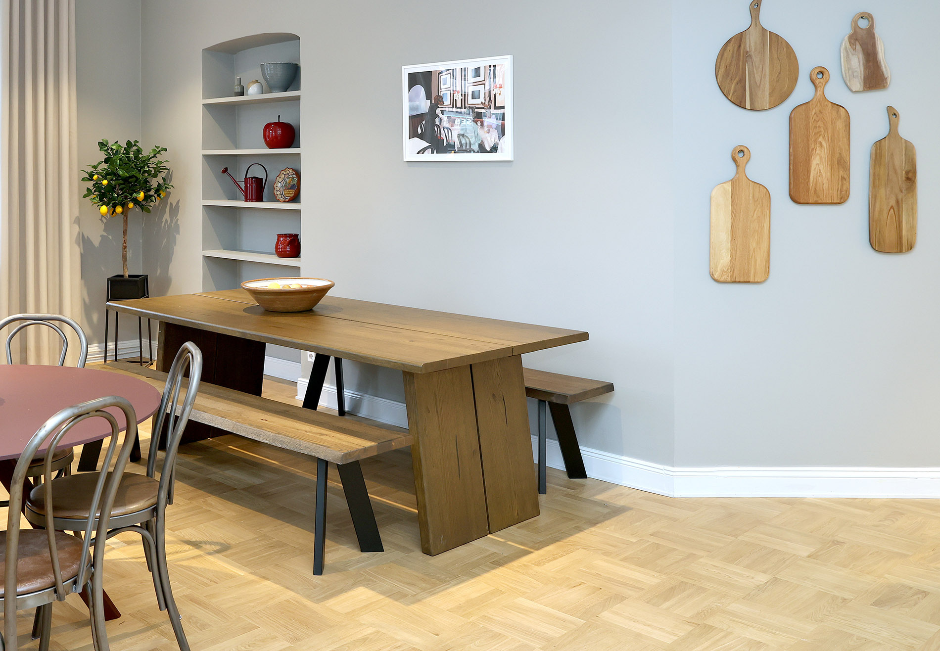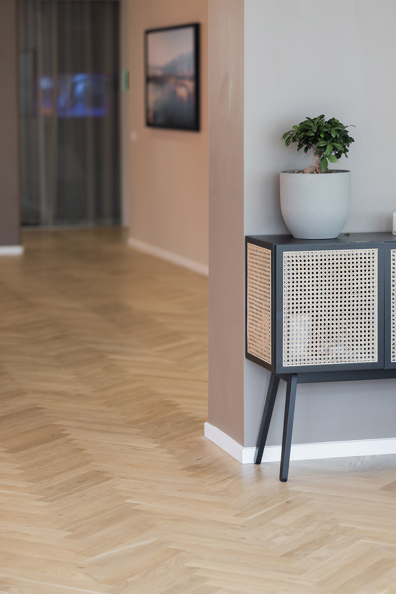 Massiv parkett och kubb. Med läggningsmönster som fiskben, ruta, tegel eller parallell kan man skapa såväl klassiska som moderna miljöer.
